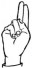 На ћирилици написано РАДНА ЦРНЧЕВИЋ састоји се из 13 слова [?]. Исписано ћириличном једноручном азбуком за глувонеме: